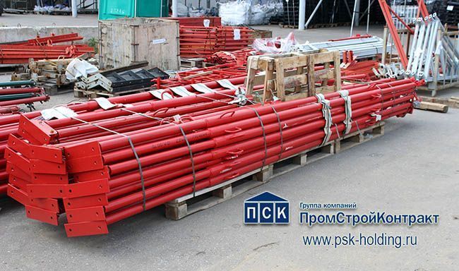 Усиленный двухуровневый подкос большой длины для работы с высокими щитами опалубки, обеспечивающий максимальную устойчивость конструкции.